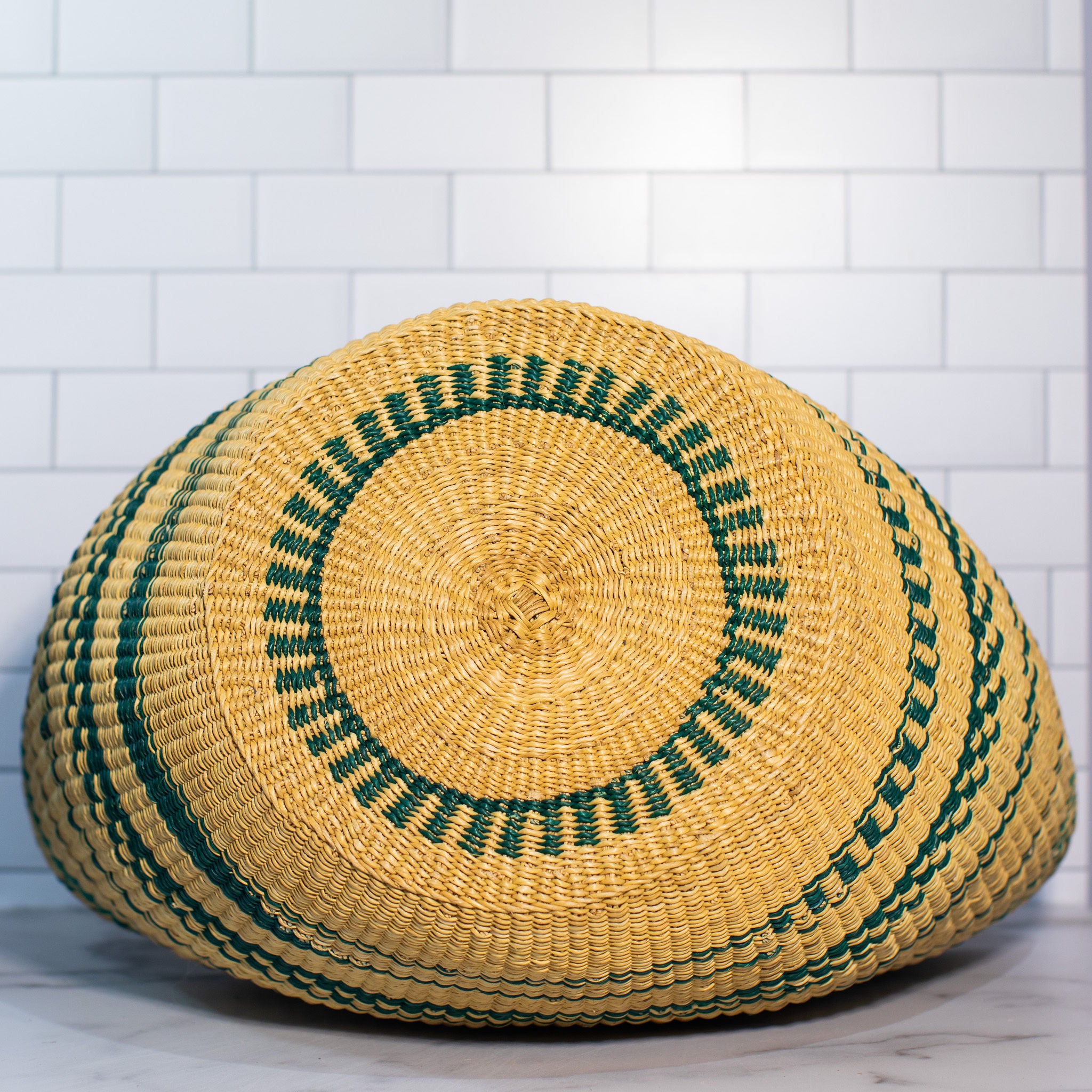 Handwoven from elephant grass and finished with a sturdy leather handle, each basket is beautiful and unique - just like the women and girls who weave them. Made in Ghana, this basket supports fair trade practices, ensuring that each purchase makes a positive impact on the lives of the artisans who create them.